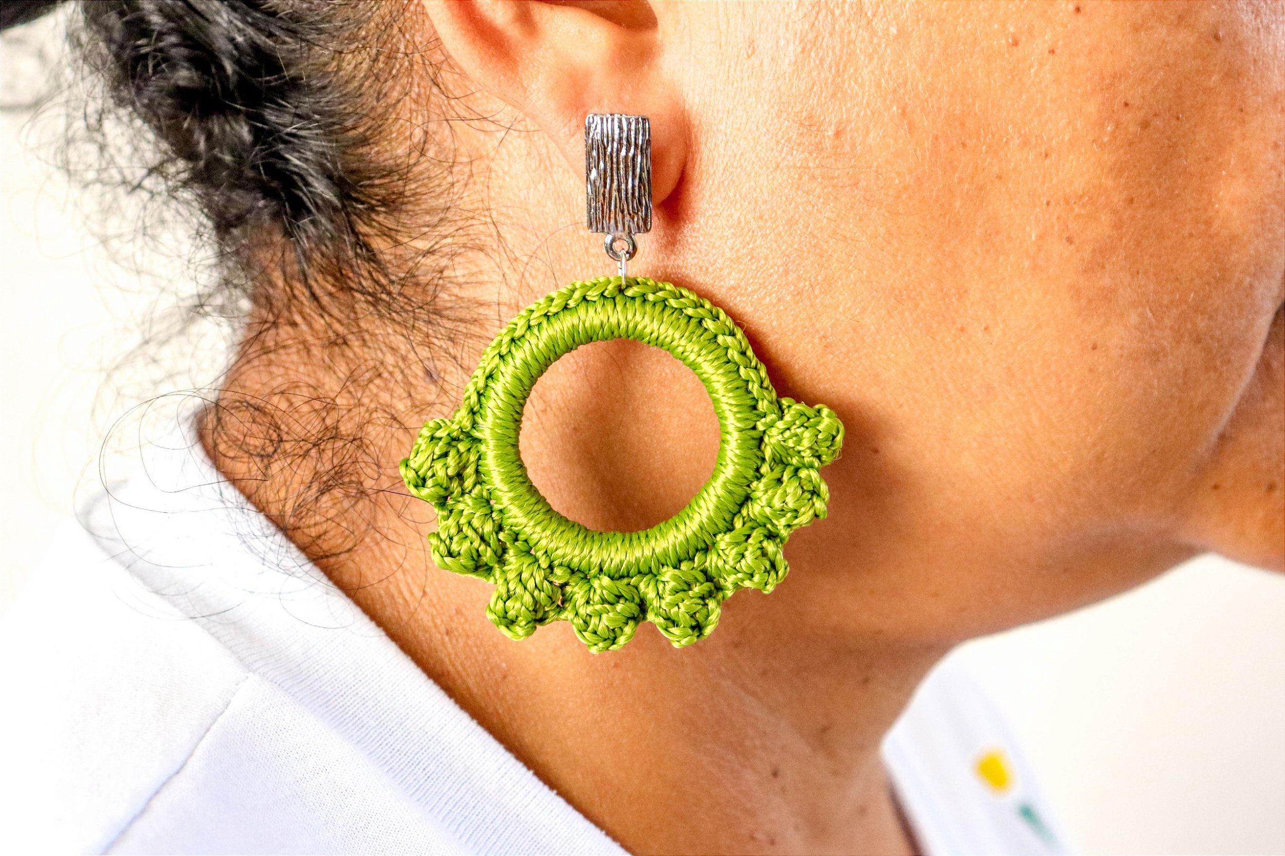 É uma peça artesanal, leve e cheia de personalidade, cada ponto é trabalhado individualmente, garantidindo exclusividade.