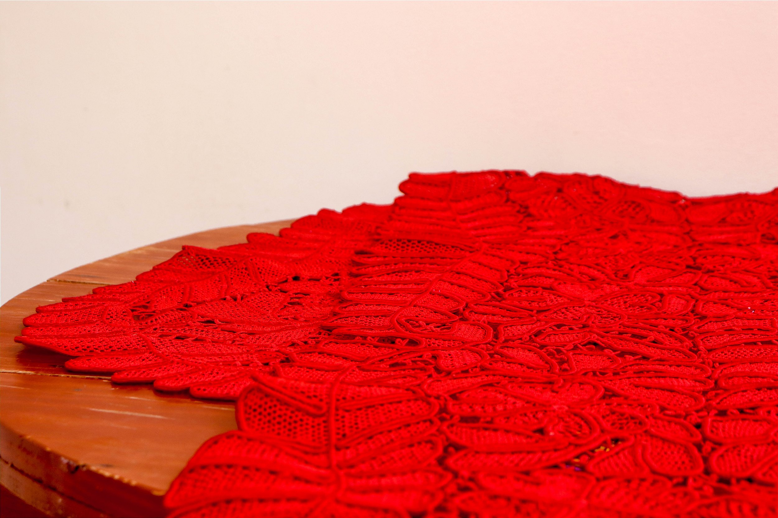 Belíssima passadeira vermelha, genuína Renda Irlandesa, para dar um toque muito especial à sua Mesa de Natal, das suas filhas,netas e bisnetas (se bem utilizada, pode durar até 100 anos).