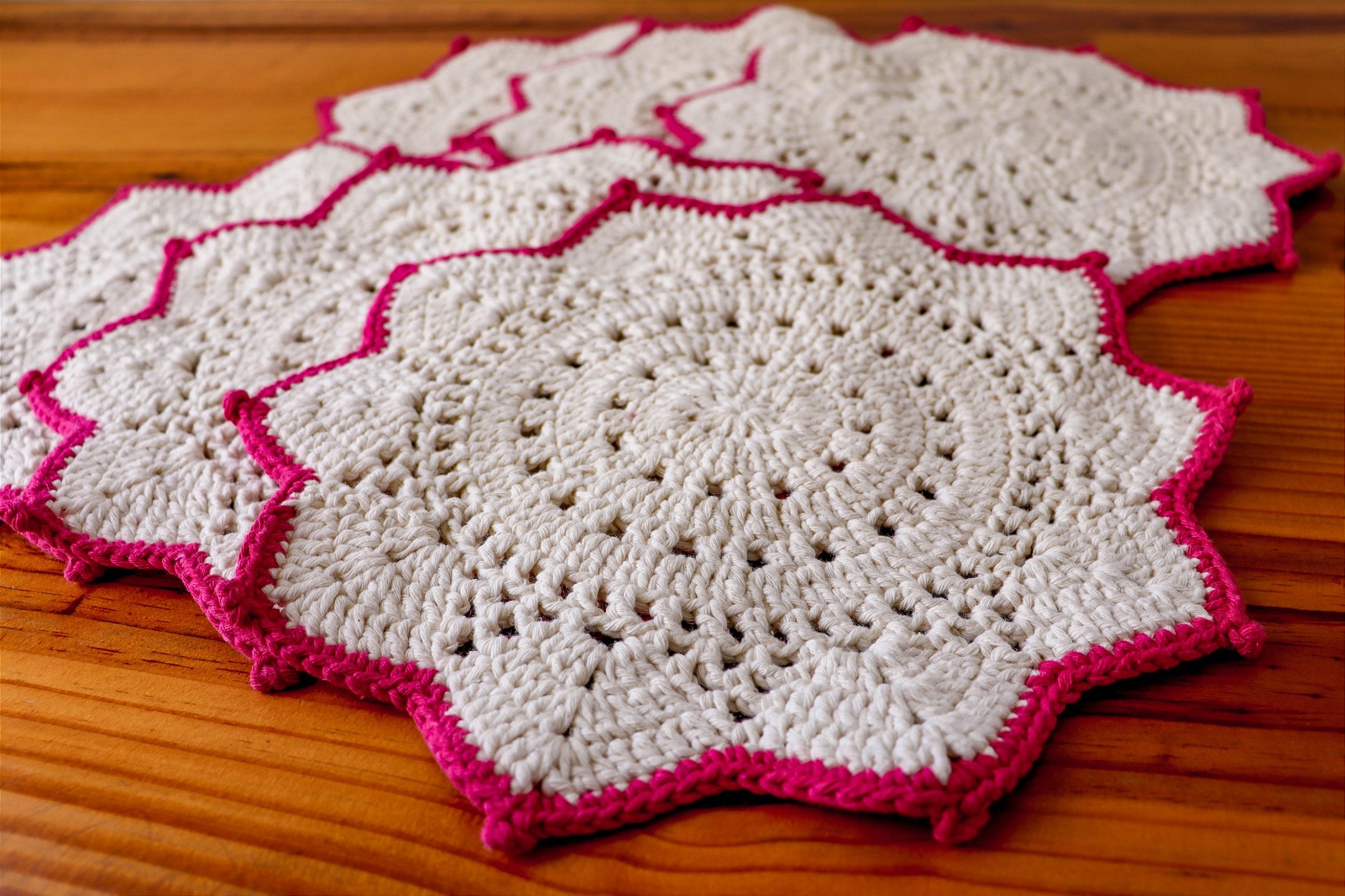Produzindo com Fios de Barbantes nas cores crú e rosa.