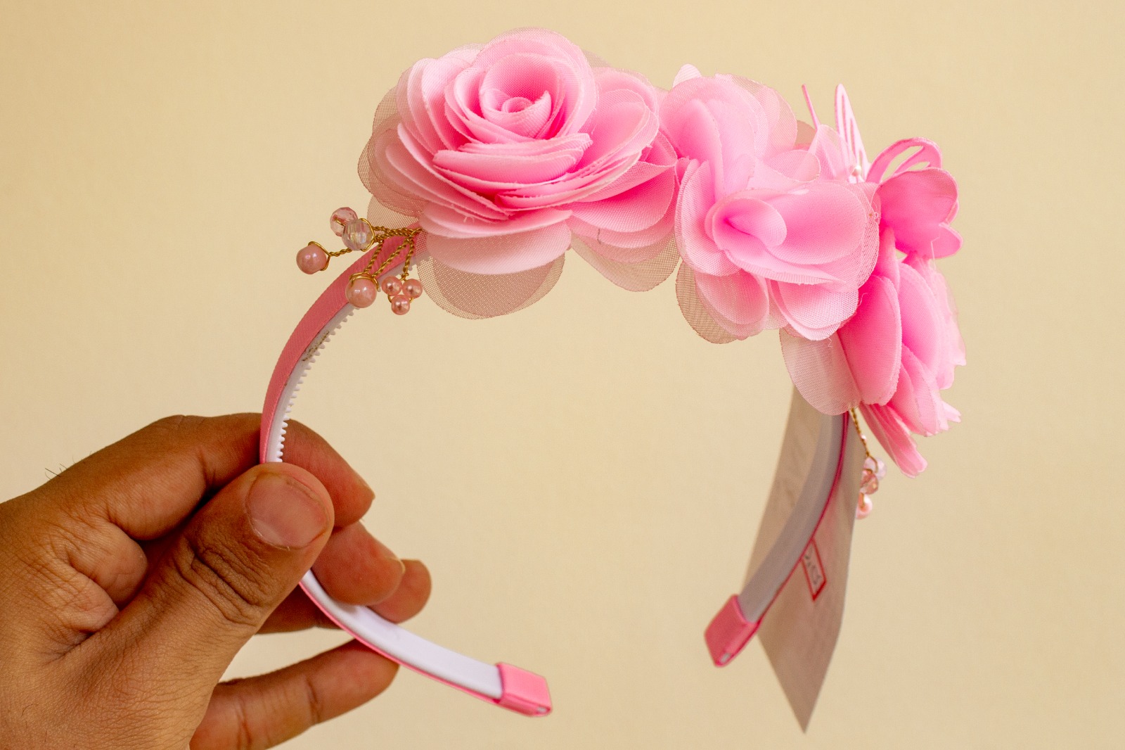 Tiara feito com Fita Gorgurão na cor Rosa Bebê (Por Encomenda)